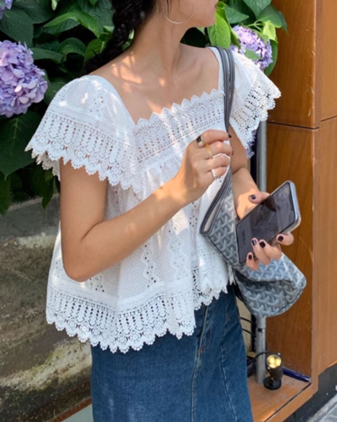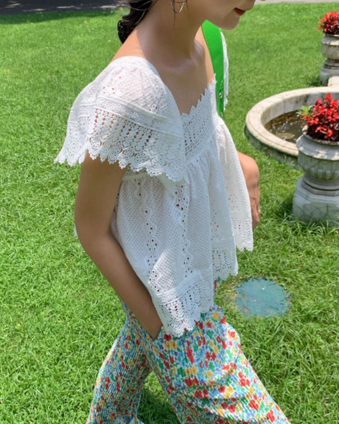 Eyelet Embroidery Frill Sleeve Lace Blouse P0029
