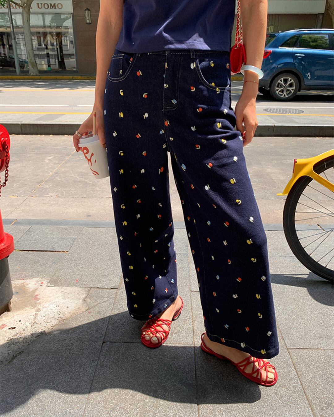High-waisted Embroidered Wide-leg Jeans P0023