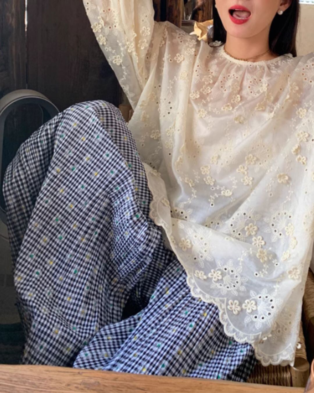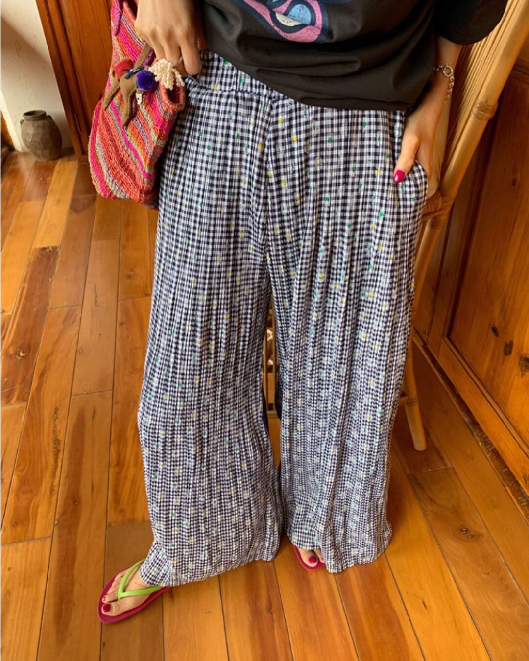 心地よいワイドシルエットとハイウエストデザインが魅力のパンツ。ギンガムチェック柄が、さりげなく個性を演出します。