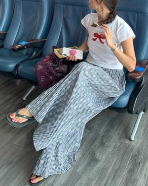 Gingham Check High Waist Flare Wide Pants P0043